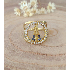 ANEL DE MOEDA ANTIGA NOSSA SENHORA COM 12 PEDRAS