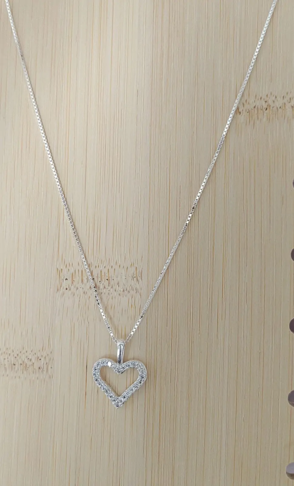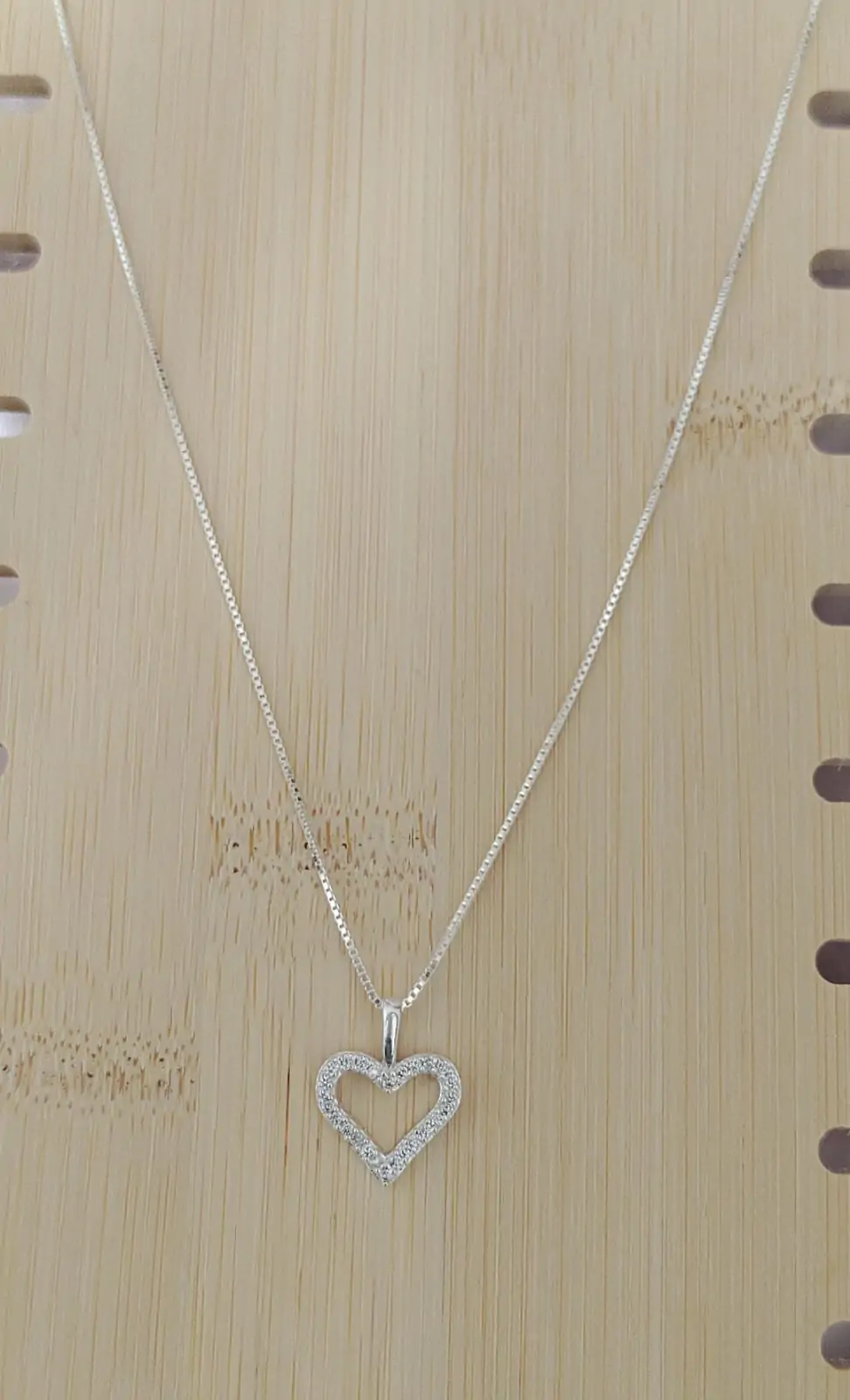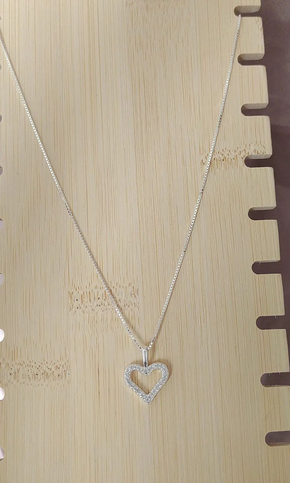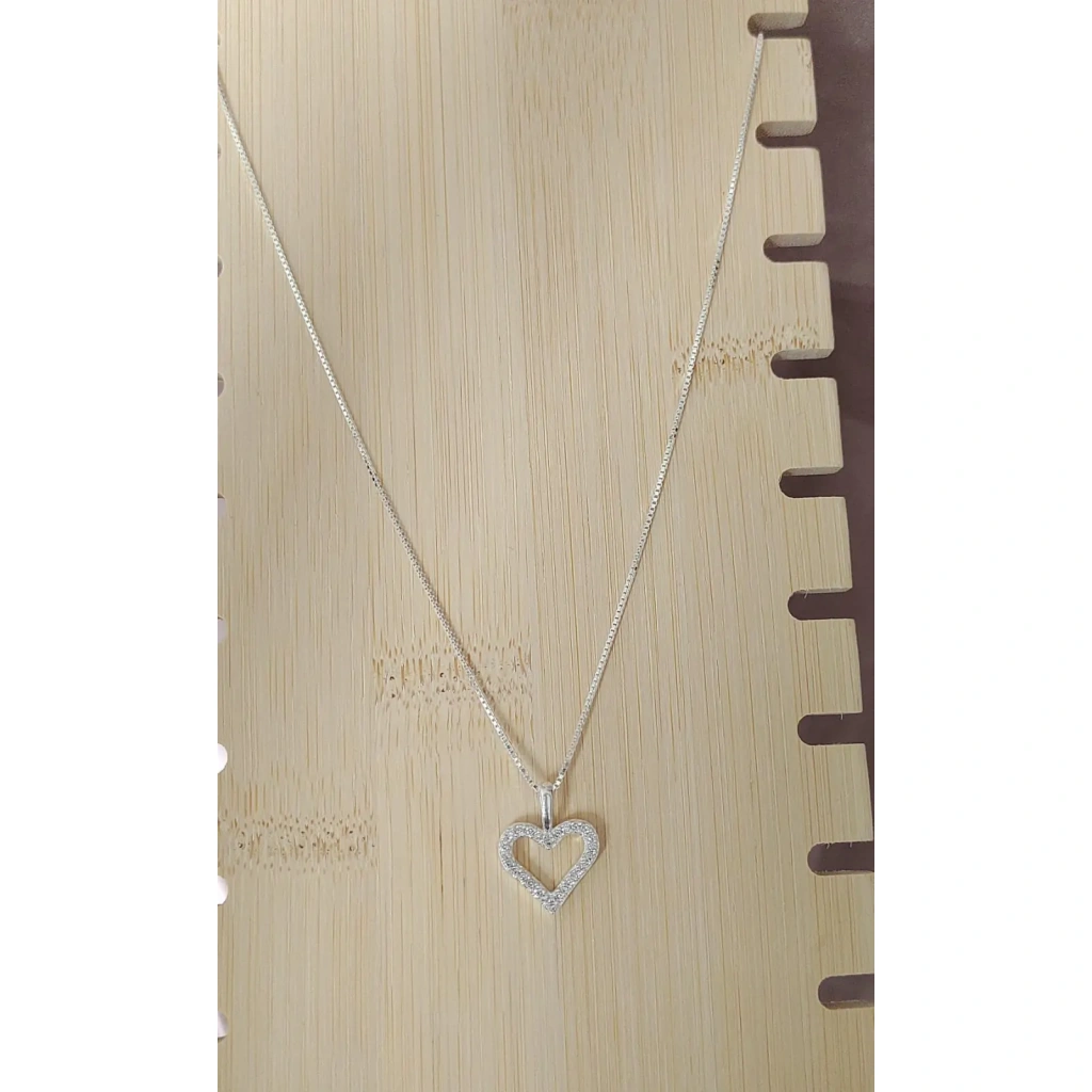 COLAR COM PINGENTE DE PRATA CORAÇÃO TAMANHO 1,5X1,8