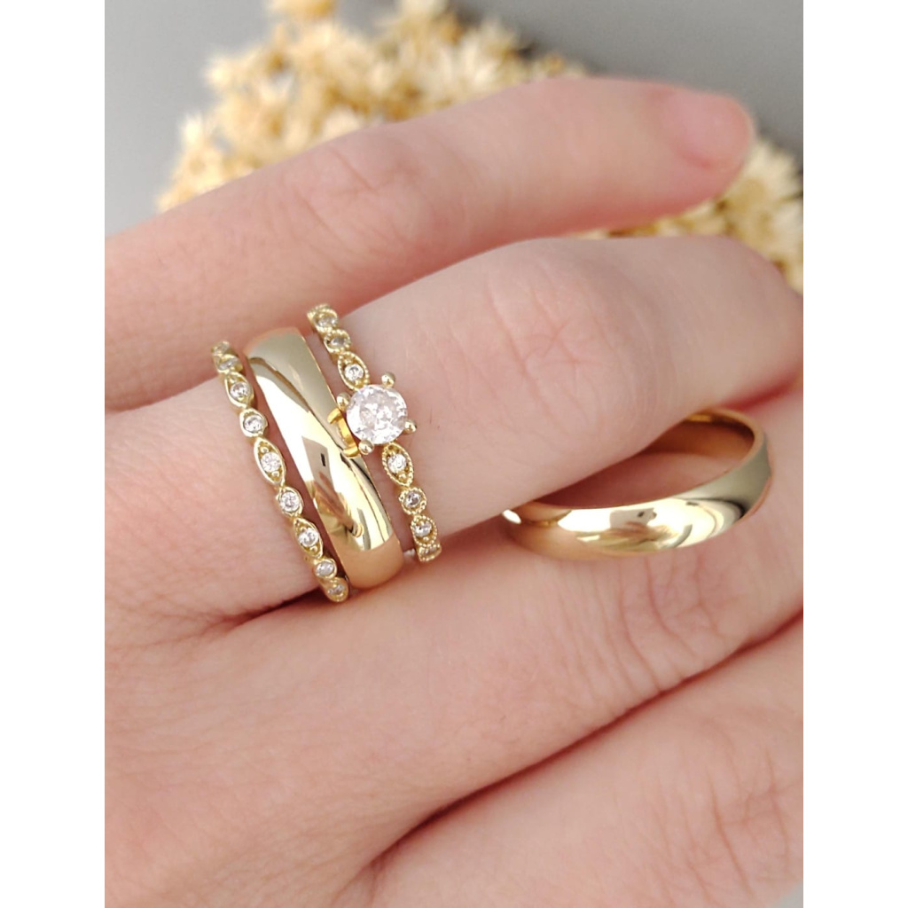 PAR DE ALIANÇA NO 4MM ABAULADA +SOLITARIO E APARADOR GOTA