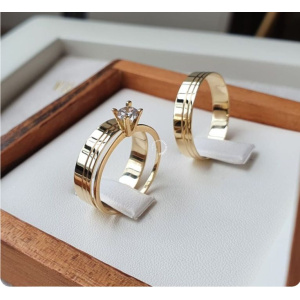 PAR DE ALIANÇA NO 4MM RETA DOIS FRISO+ SOLITARIO