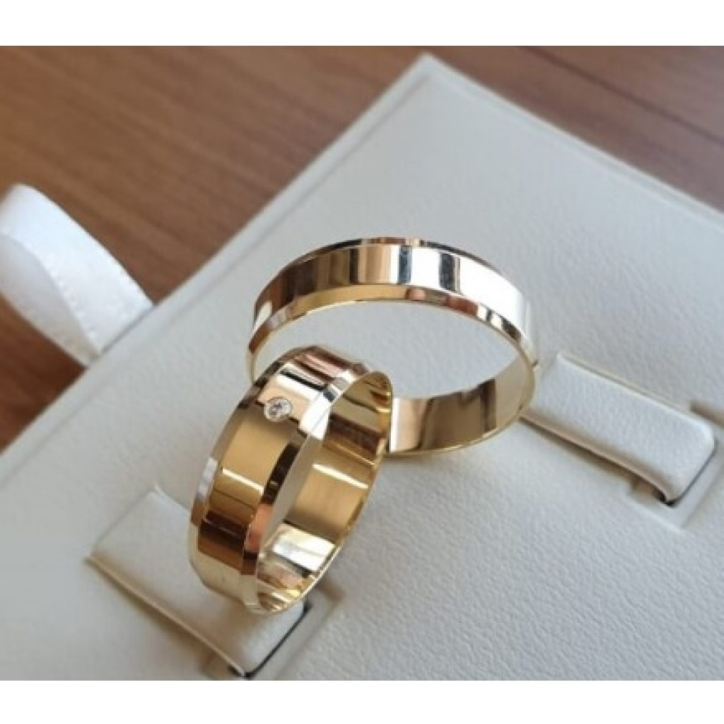 PAR DE ALIANÇA DE MOEDA ANTIGA 6 MM CHANFRADA COM 1 PEDRA