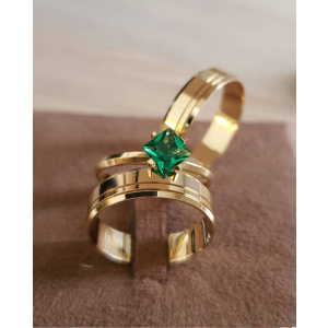 PAR DE ALIANÇA DE MOEDA ANTIGA 6 MM CHANFRADA+ SOLITARIO
