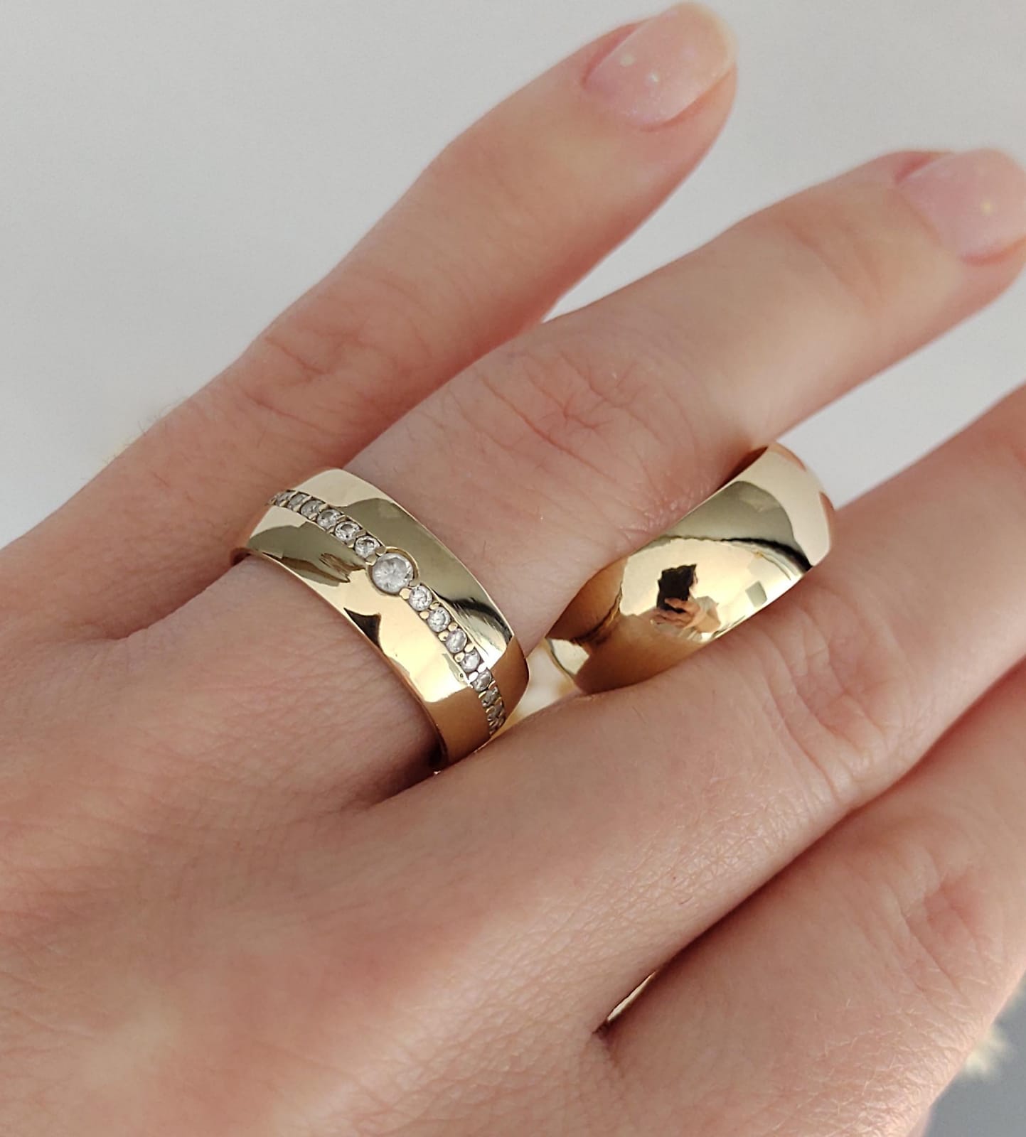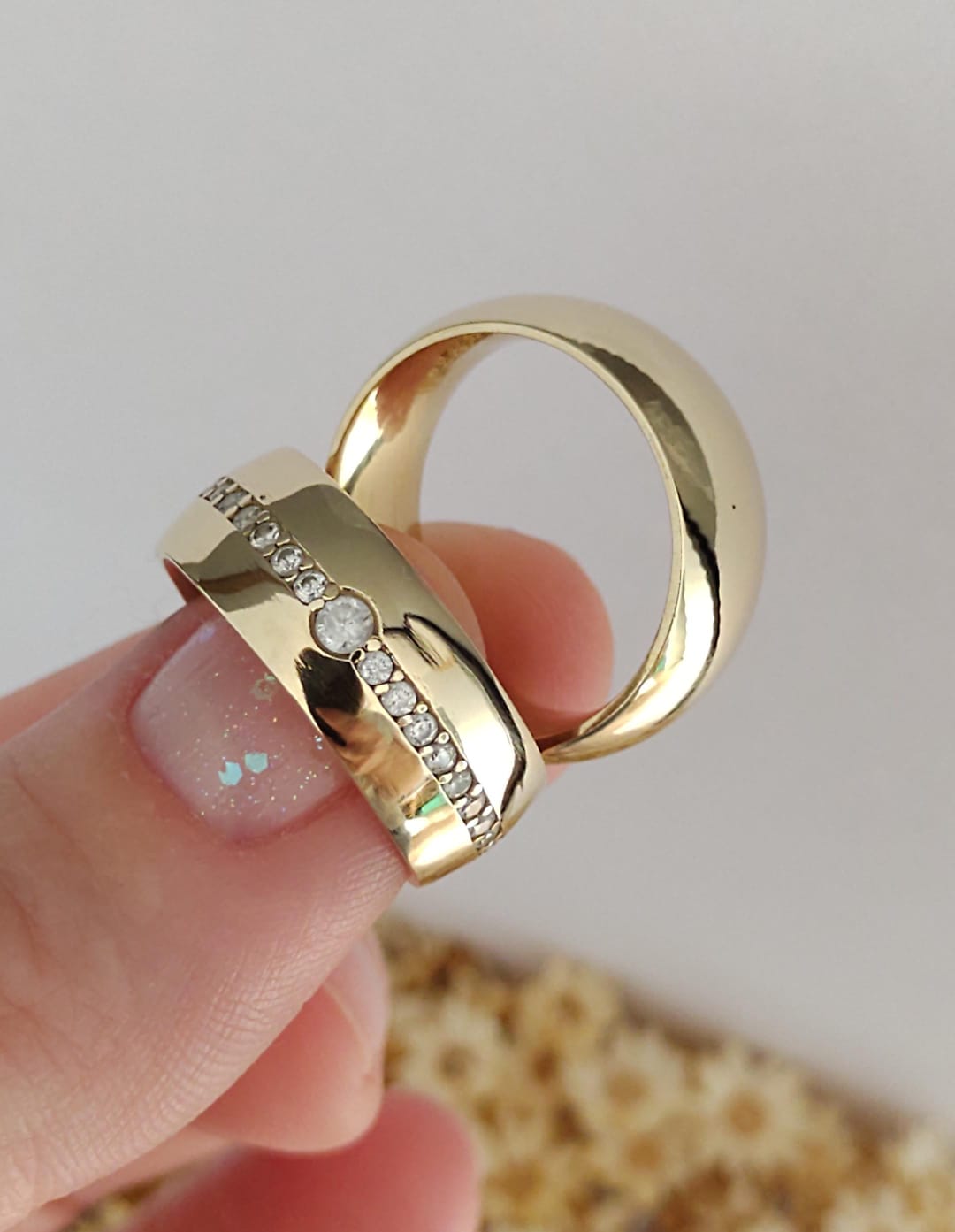 PAR DE ALIANÇA DE MOEDA ANTIGA 8MM ABAULADA COM 23 PEDRAS