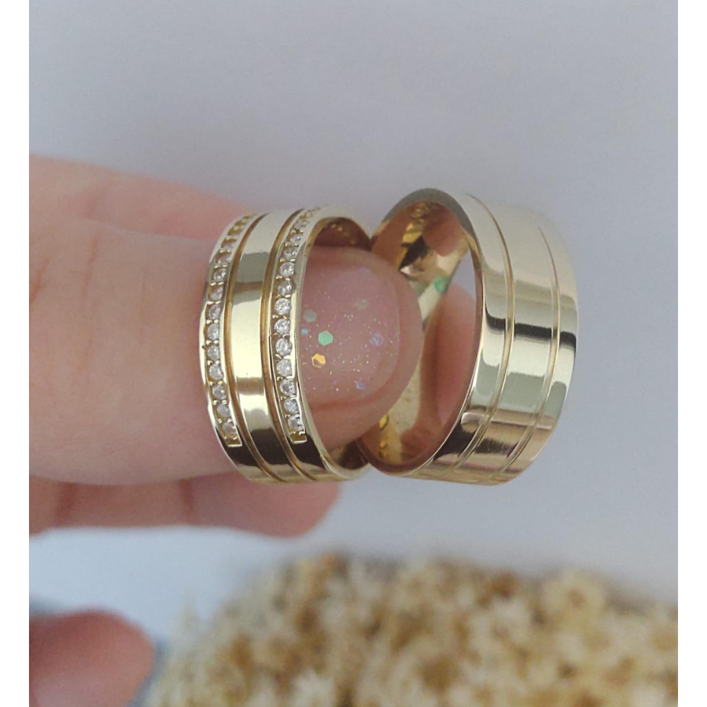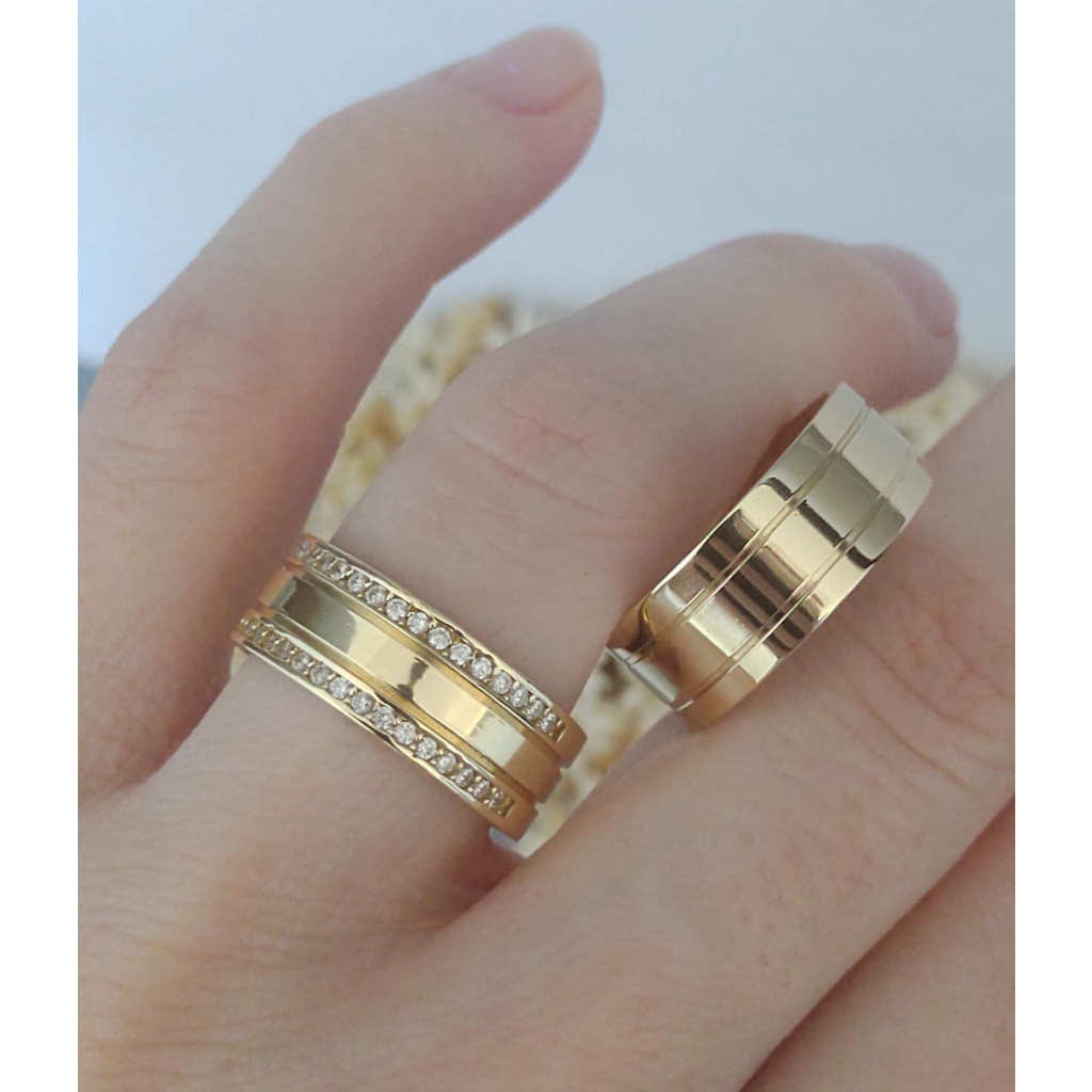 PAR DE ALIANÇA DE MOEDA ANTIGA 8MM CRAVEJADA COM 2 FRISO