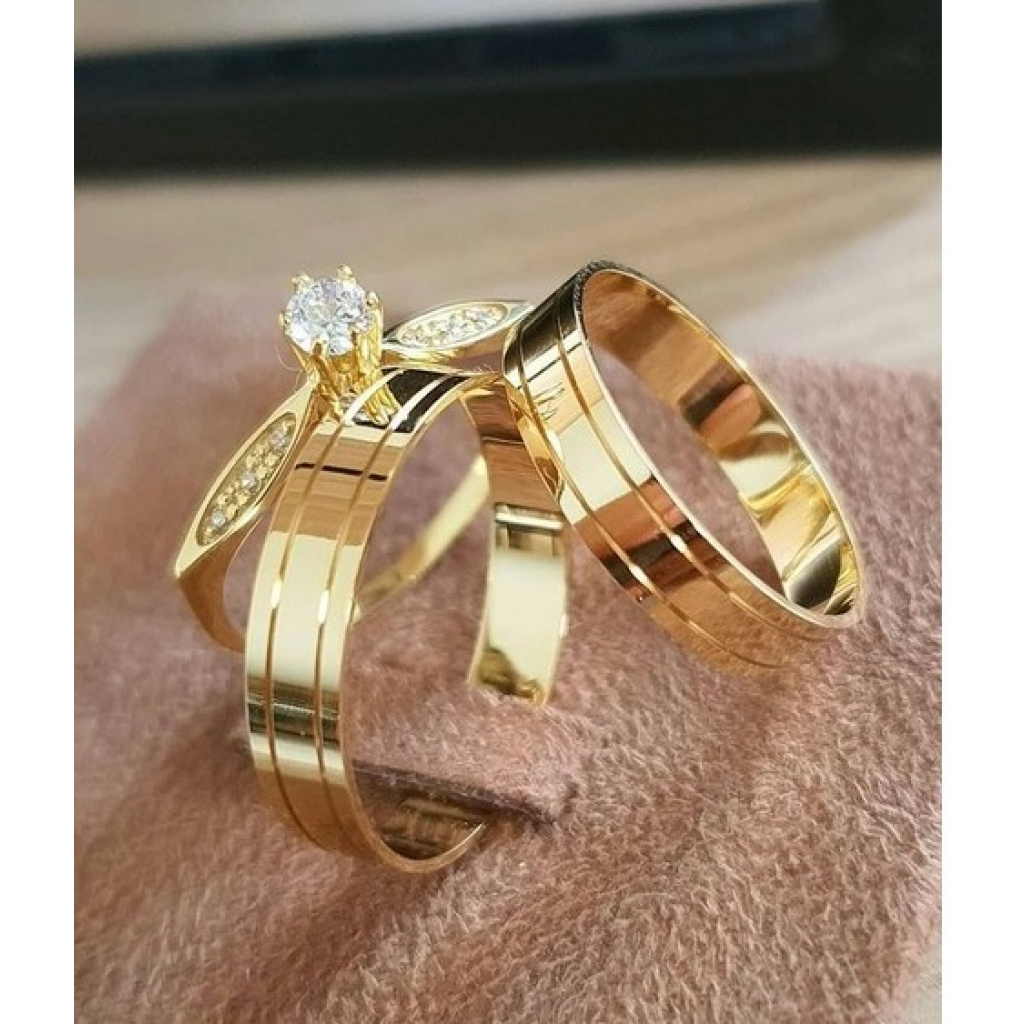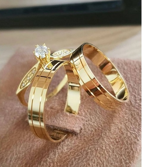 PAR DE ALIANÇA RETA DE MOEDA ANTIGA 6 MM+ SOLITÁRIO FOLHA