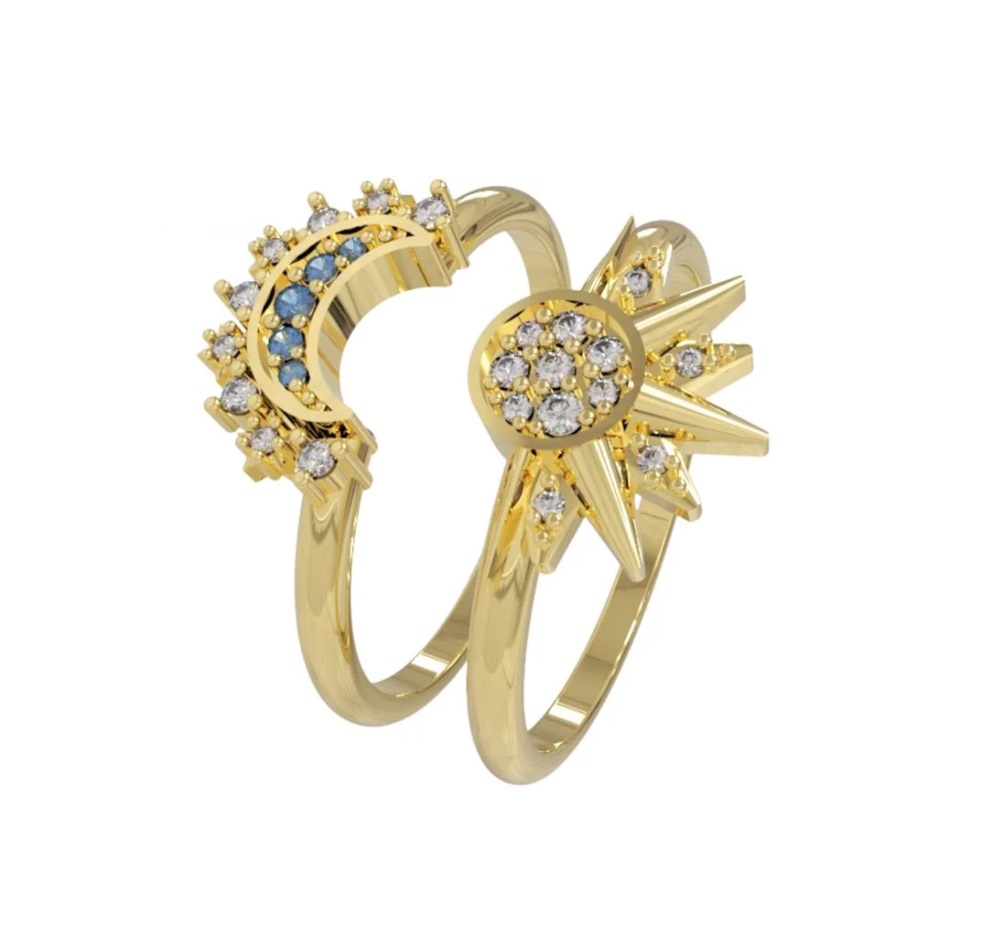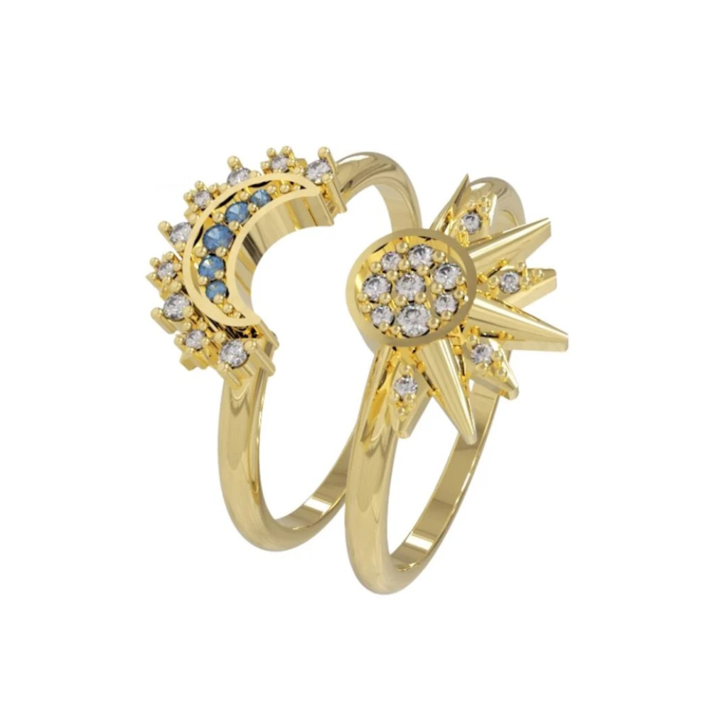 PAR DE ANEL DE MOEDA ANTIGA SOL E LUA